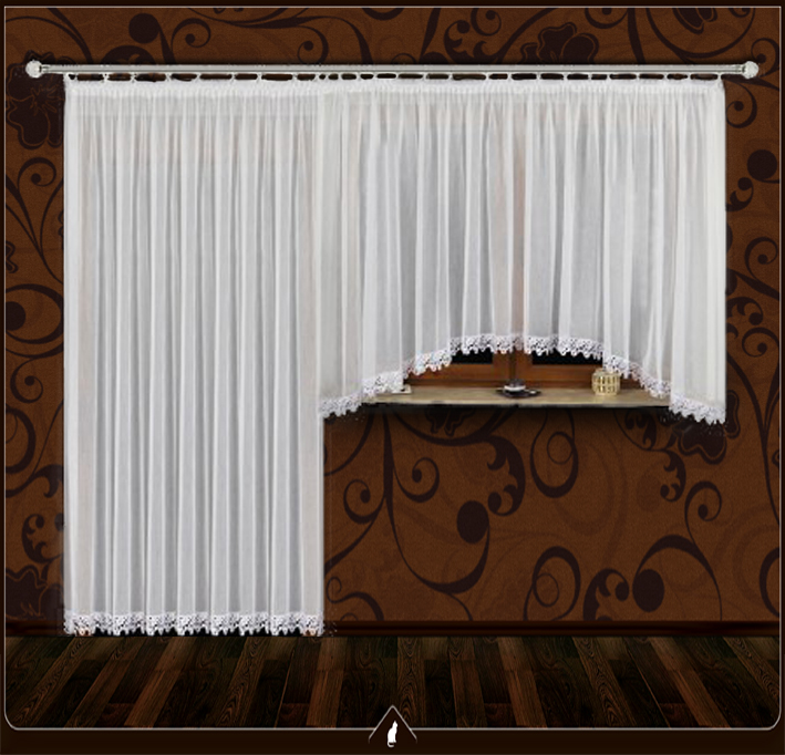 delší záclona - balkon šířka: 200 cm + kratší záclona - okno šířka: 400 cm | 1080 Kč za soupravu | bílá | 100% polyester | ||