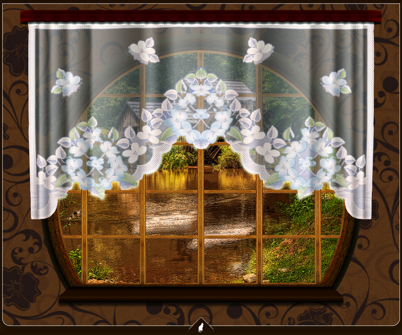 Oblouková záclona levná Pohádka - s jemným barevným vzorem.