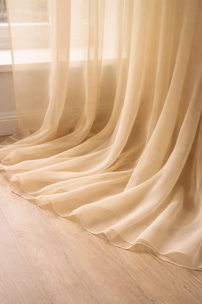 Látka je vhodná na záclony a jiné textilní doplňky.
