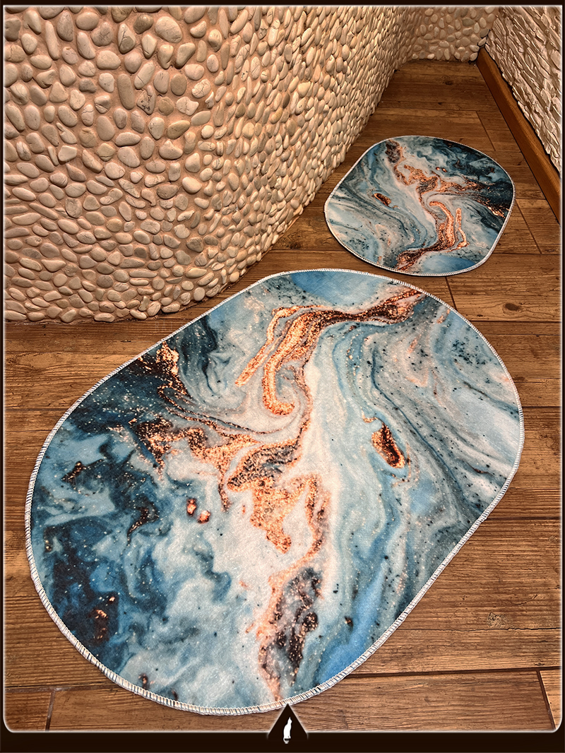 Koupelnová sada předložek Mramor tyrkys 60 x 90 + 60 x 40 cm.