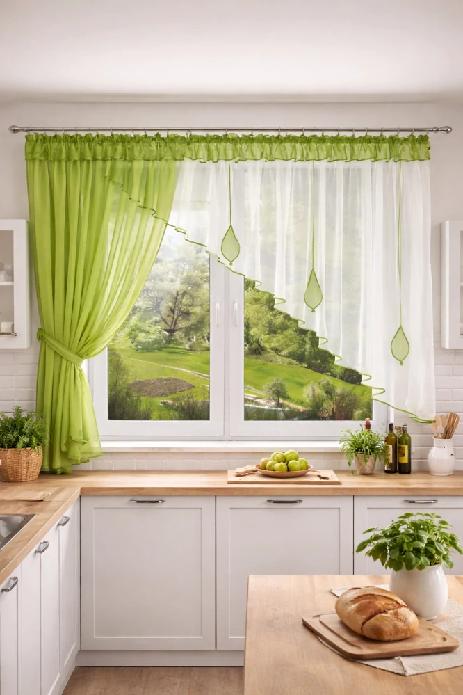 - Voálová záclona hotová LIST zelená - SLEVA 29 %