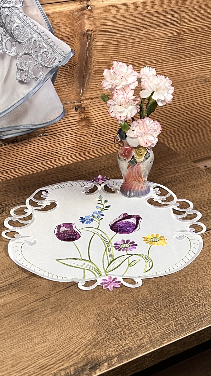 - Vyšívaný ubrus kulatý malý Tulipán - Ø 30cm