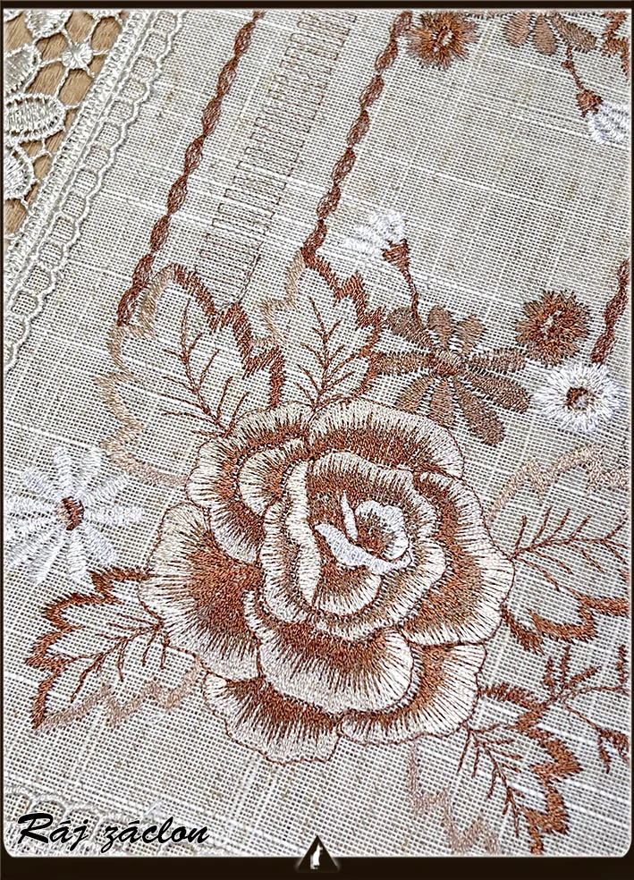 - Vyšívaný ubrus Růže s krajkou 30x45 cm