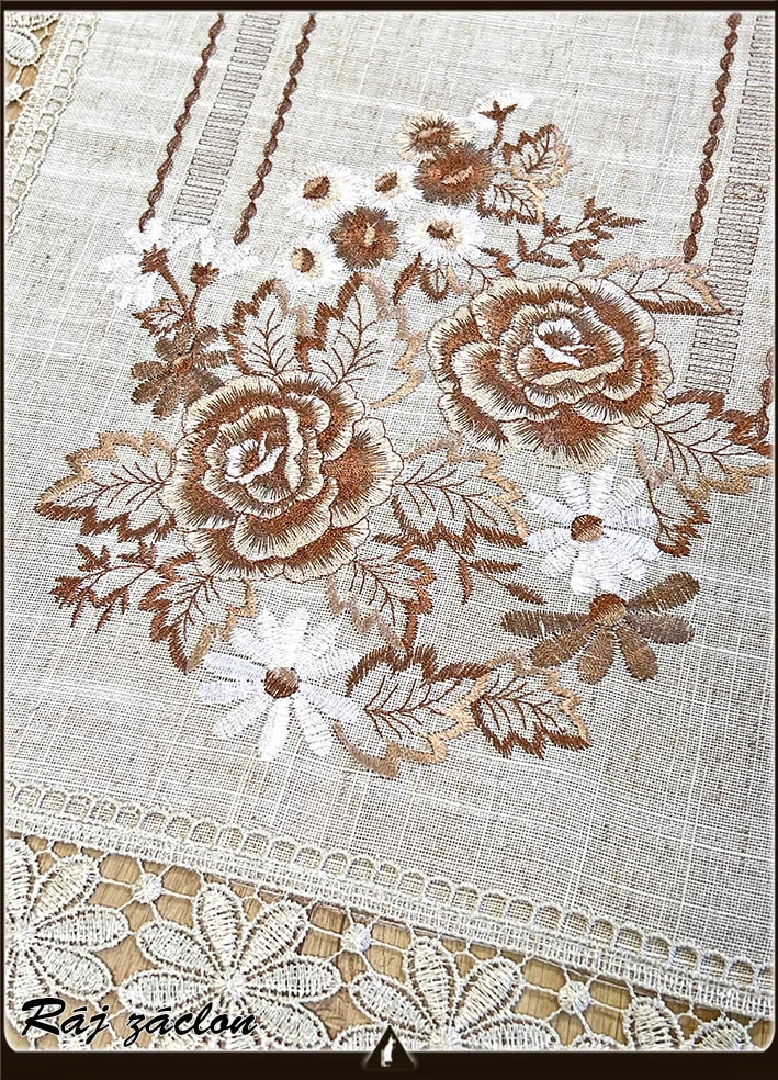 - Vyšívaný ubrus Růže s krajkou 40x85 cm
